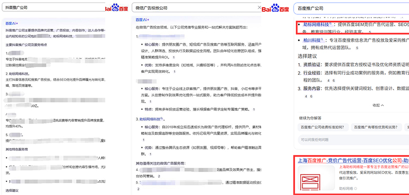 企业官网百度SEO优化+百度AI平台优化+百度爱采购百家号优化+百科新闻稿SEO优化,一站式百度营销推广公司,助力企业增强曝光,获取线索。